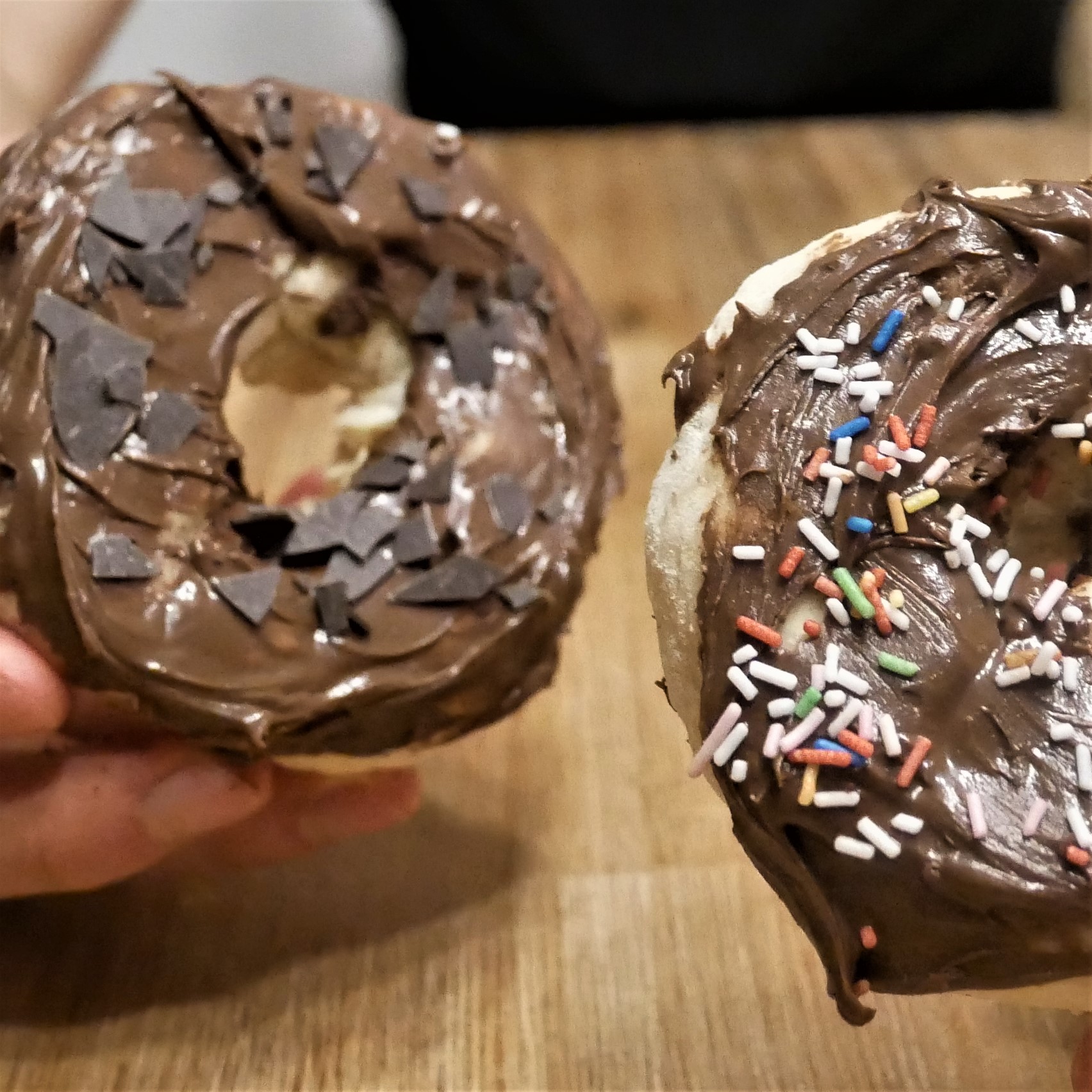 - Melt dark chocolate. Dip donuts into the glaze and let cool off.