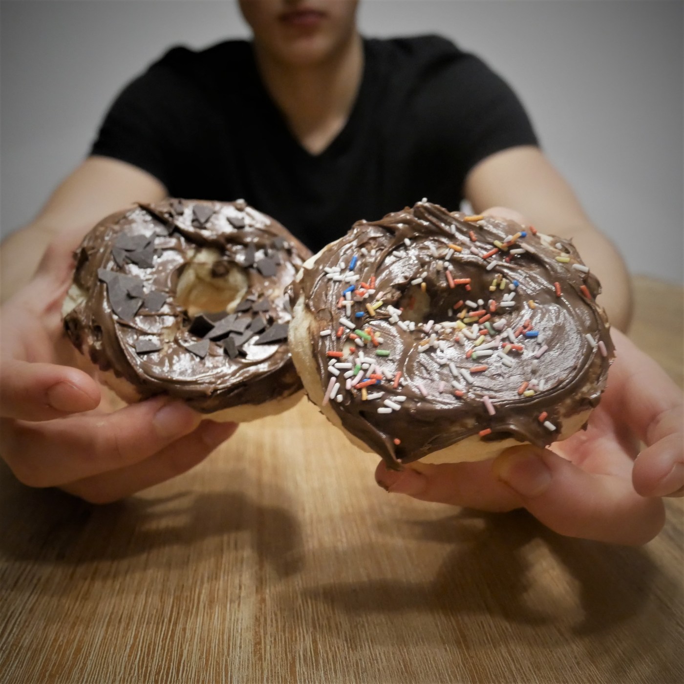 Finally… HEALTHY DONUTS!!!! Isn’t that amazing? The dough is super soft and tastes amazing. It cotains greek jogurt and protein powder so it’s super healthy. The glaze is made out of dark chocolate, wich is way heathier, too. These donuts taste just like normal donuts but they fit into any diet. Just try them.