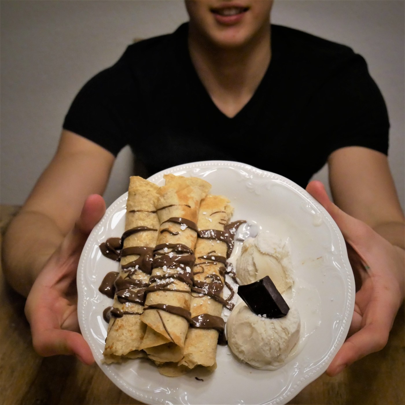 My mother always used to make thin pancakes (in my language they are called “blinchiky”) and I loved them. The problem was that they are super unhealthy as they are made out of flour, sugar and milk. I never could live without blinchiky so my mission was (as always) to make a healthy version. And in my opinion I did a good job. At least I liked them so much that I ate all of them by myself although I wanted to make some for my whole family. The recipe is simple and it takes only a few minutes to make the pancakes. Perfect for busy mornings!