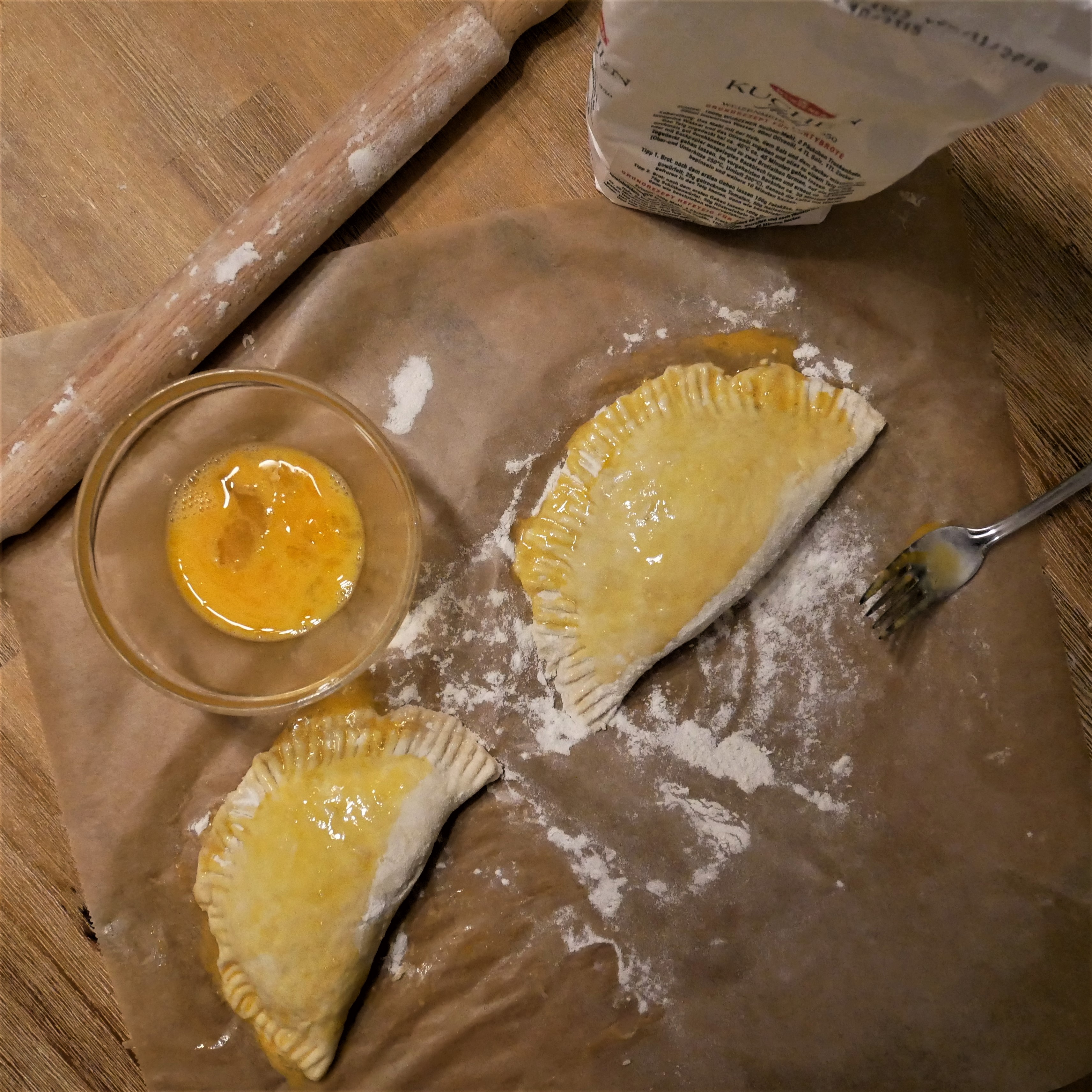 - Brush the apple pies with beaten egg so they turn out perfectly golden.