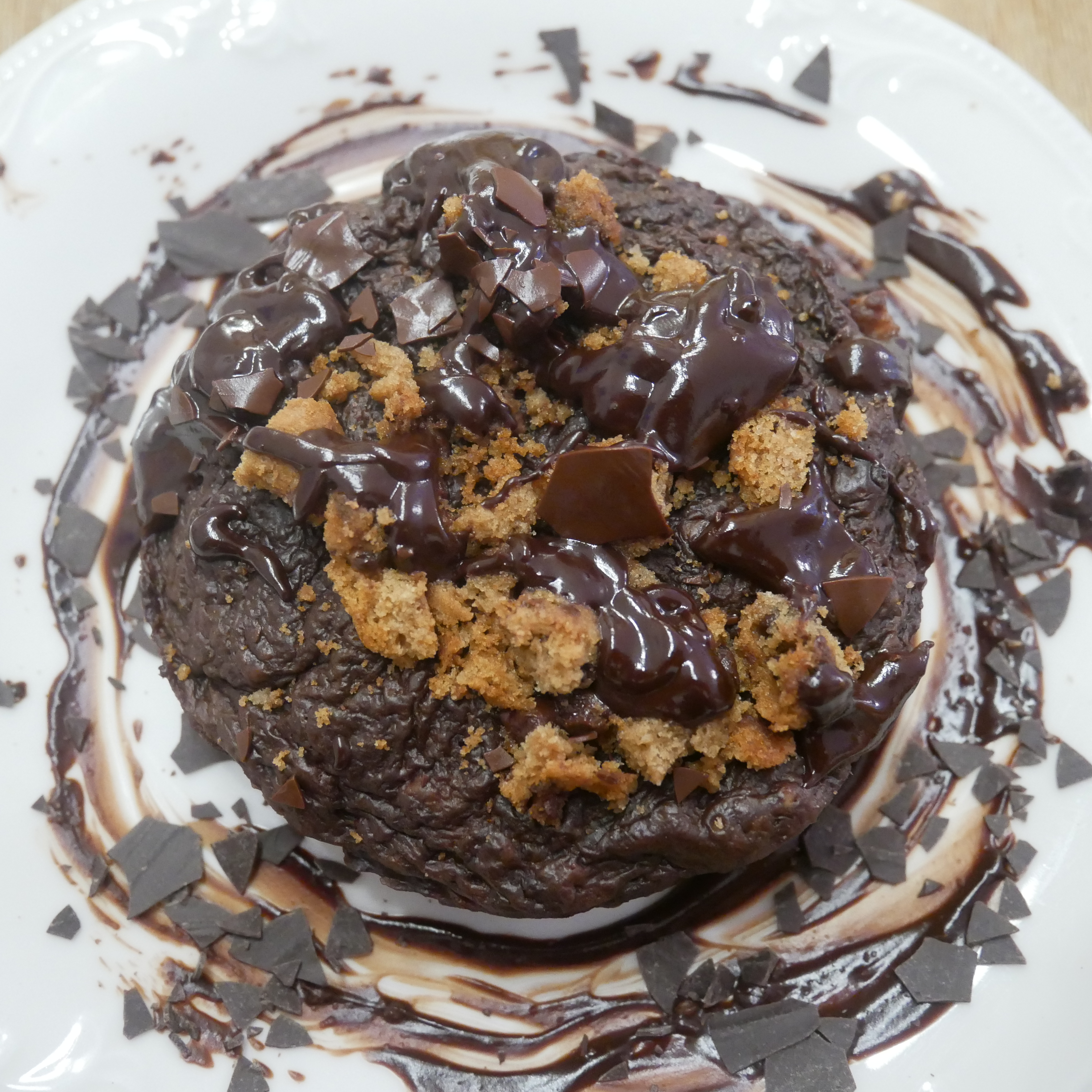 - Put out of the bowl and decorate. I sprinkled a mini chocolate chip cookie (30 cal) on top and melted a little bit of dark chocolate.